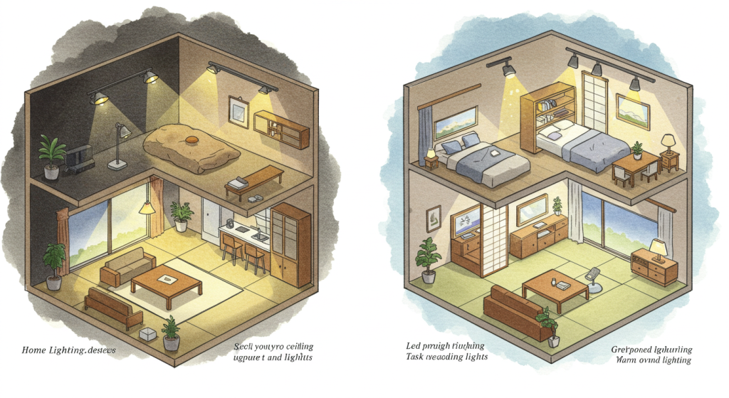 各部屋の用途と特性に応じた具体的な照明配置計画を立てることが、成功する照明環境の実現につながります。