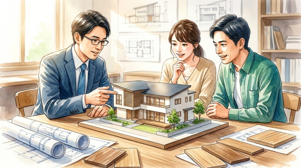 良い設計士や担当者は、家族構成・ライフスタイル・将来の計画・予算・好みのデザインテイストなどを丁寧にヒアリングします。単に「何部屋欲しいですか」と聞くだけでなく、「どんな生活をしたいですか」「朝の行動パターンはどうですか」といった深い質問をしてきます。
